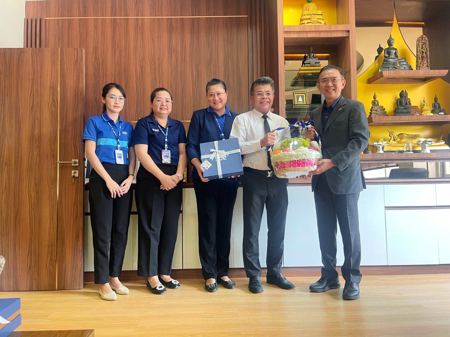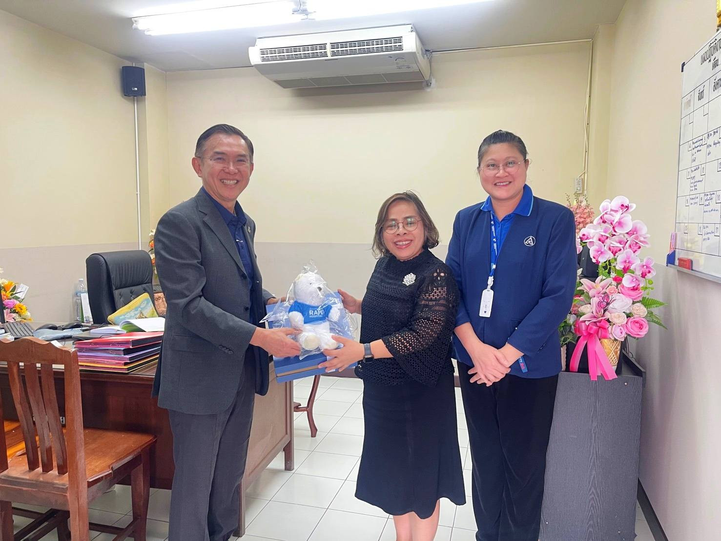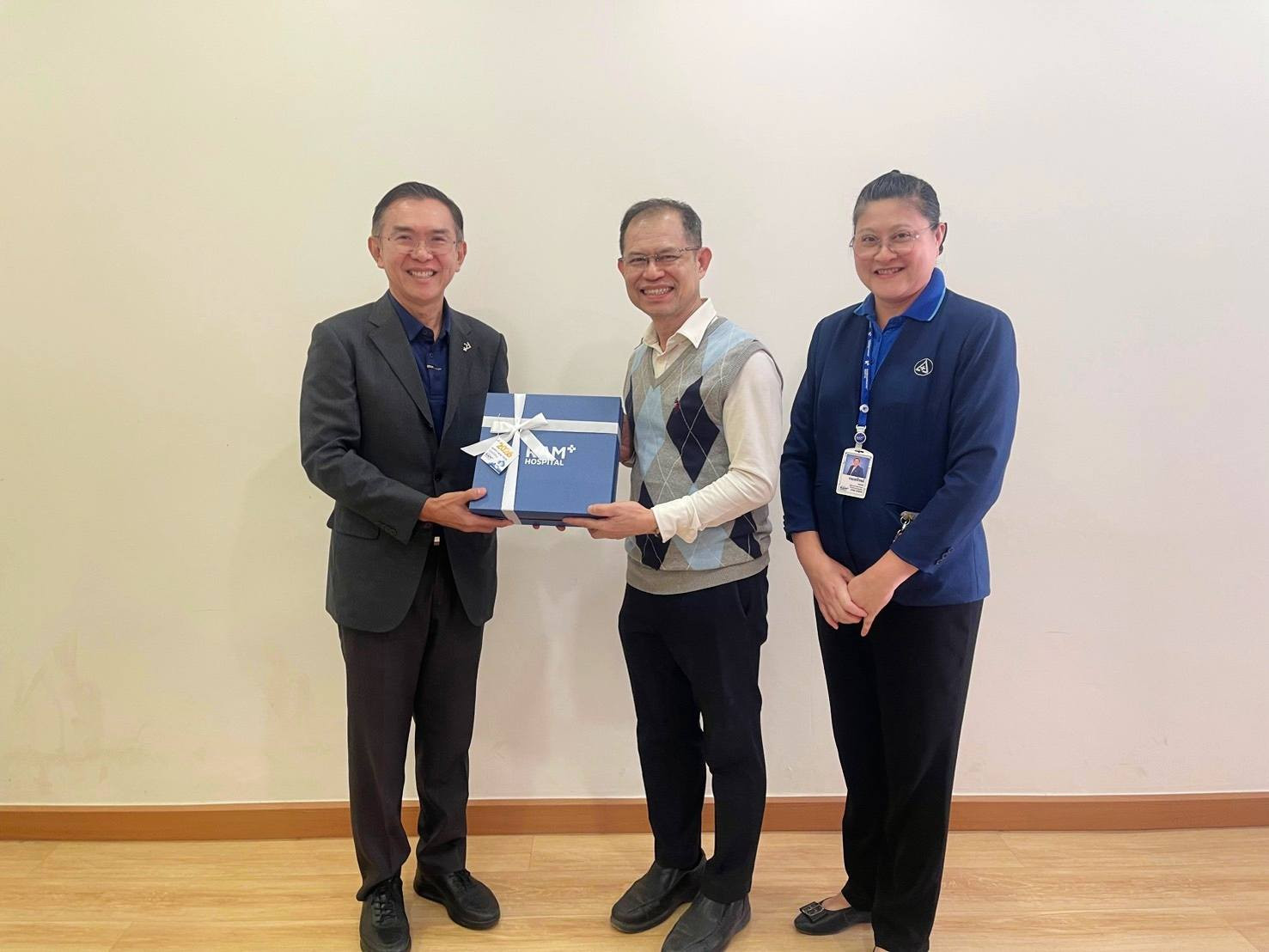 วันที่ 20 ม.ค. 2569 นพ.กิติศักดิ์ ด่านวิบูลย์ กรรมการบริหารโรงพยาบาลชัยภูมิ ราม เข้าพบและมอบกระเช้าสวัสดีปีใหม่ 2569 ให้แก่ ผศ.(พิเศษ) นพ.ณรงค์ศักดิ์ บำรุงถิ่น ผู้อำนวยการโรงพยาบาลชัยภูมิ นพ.สุกิจ พรหมรับ รองผู้อำนวยการฝ่ายการแพทย์ พว.สมควร พิรุณทอง รองผู้อำนวยการฝ่ายการพยาบาล