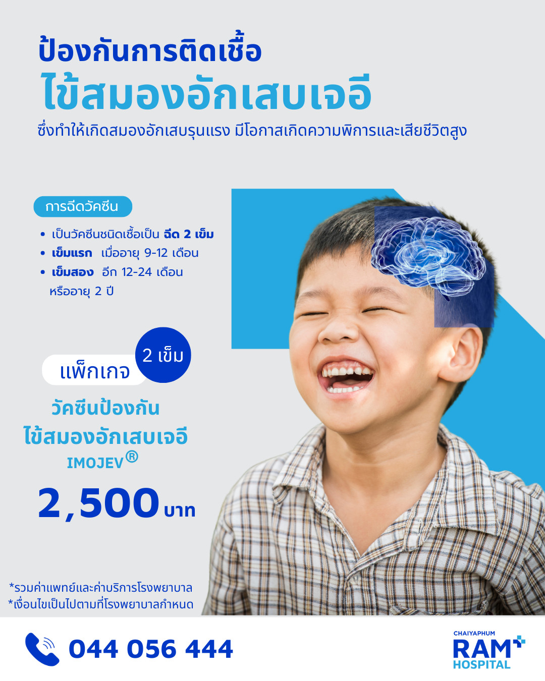 สำหรับโรคไข้สมองอักเสบที่ฟังดูแล้วน่ากลัว หากเป็นแล้วมีโอกาสเสียชีวิตสูง หรือถ้ารอดก็ยังได้รับผลกระทบที่เกิดความเสียหายของสมอง อีกทั้งยังไม่มียารักษาโดยตรงทำได้เพียงแค่รักษาด้วยการประคับประคองอาการเท่านั้น แต่ทั้งนี้โรคไข้สมองอักเสบเจอีสามารถป้องกันได้ตั้งแต่เด็ก เพียงแค่คุณพ่อคุณแม่พาลูกน้อยเข้ารับวัคซีนพื้นฐานเพื่อเสริมภูมิคุ้มกันตั้งแต่เด็ก